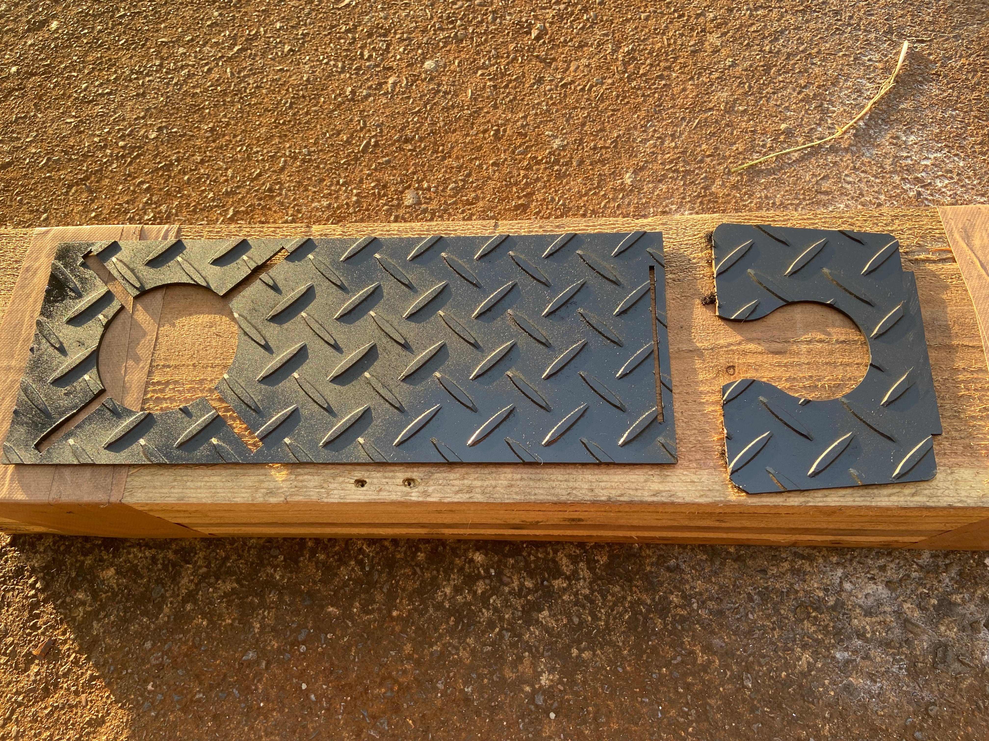 縞板を使った、SOTOレギュレーターストーブ用(ST-310)の鉄製遮熱テーブルです。
