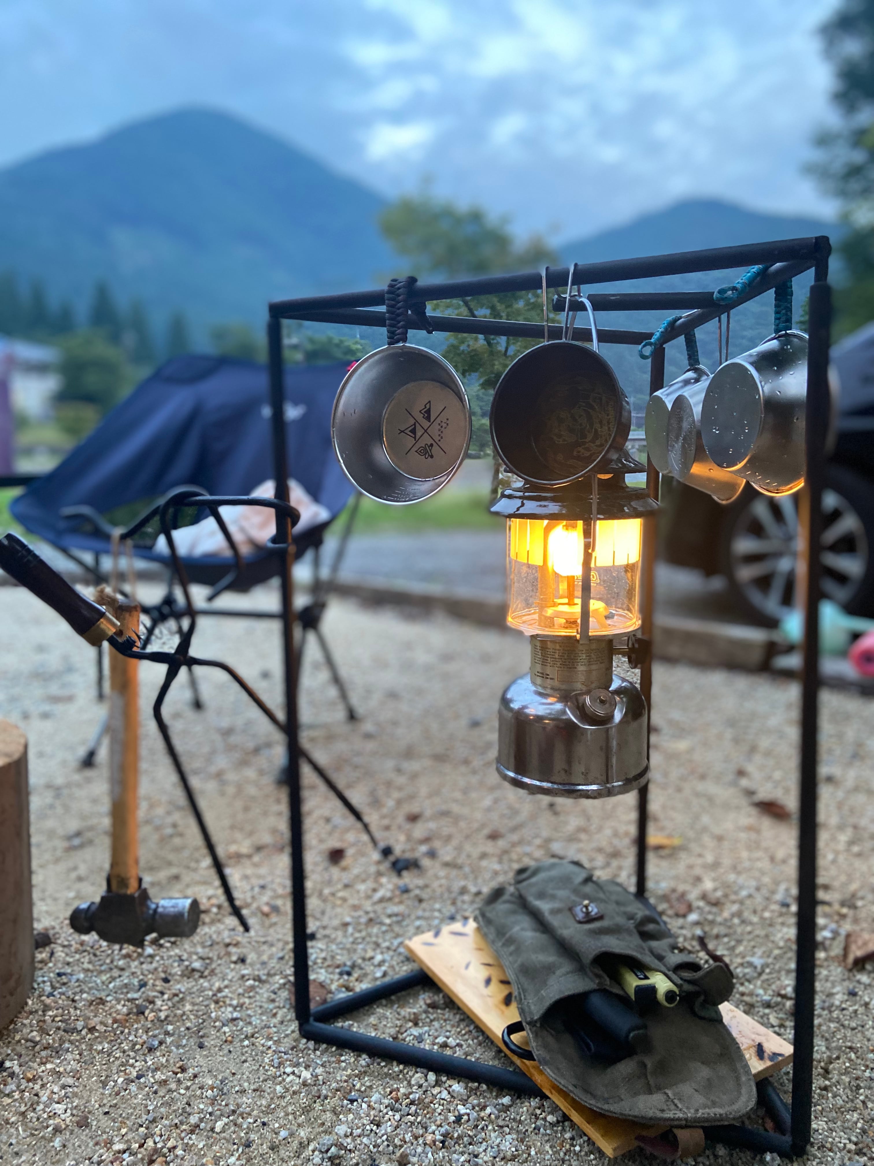縦置き時に真ん中にランタンや、ダッチオーブンなど吊るせるようにしております。